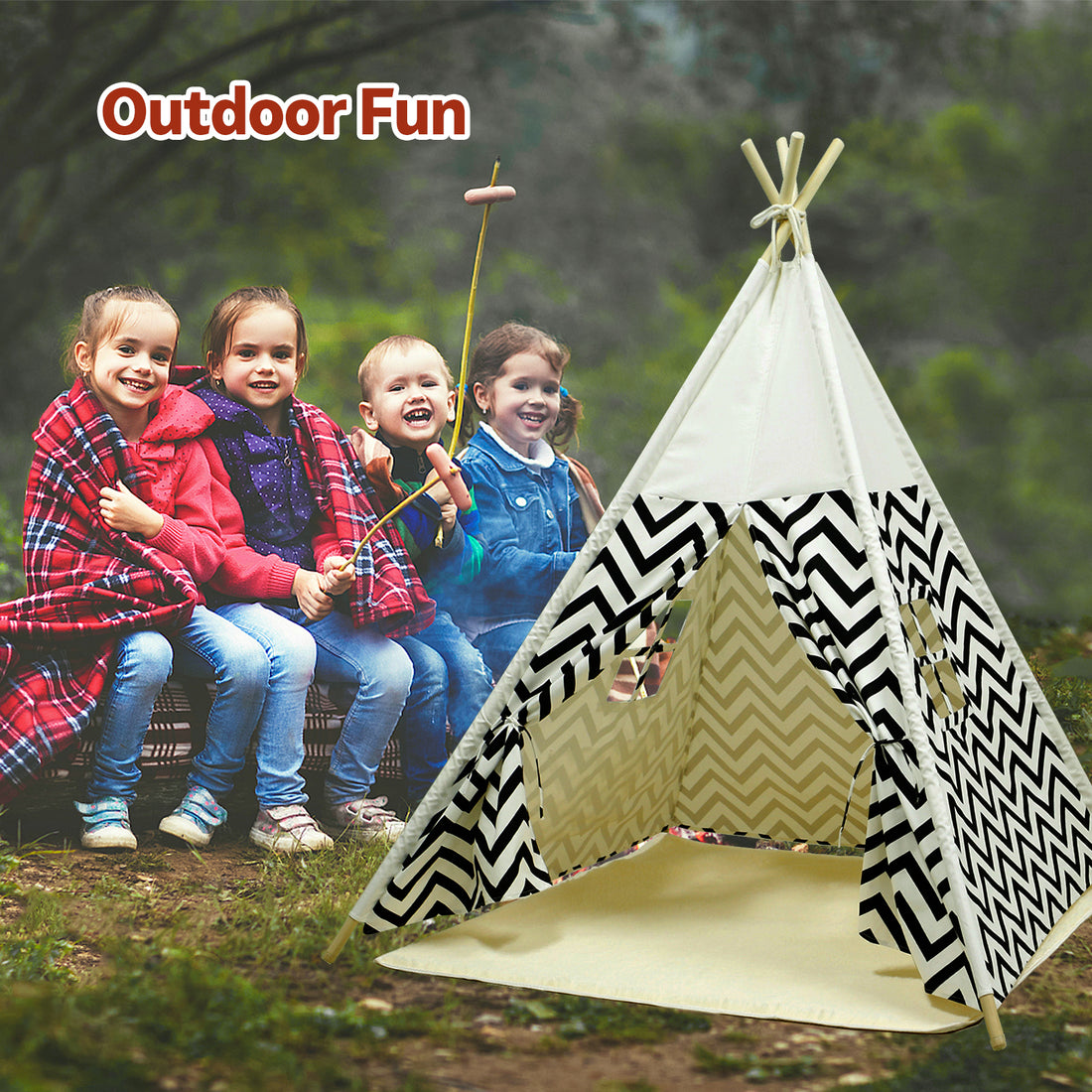 Teepee Tent For Kids Foldable Teepee Play Tent With Fairy Lights Carry Case Water Resistance Pretend Camp Fire Four Poles Style Raw White Color New Version Teepee Kids Room Teepee